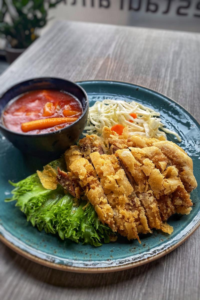 26. Fritert and med sursøtsaus